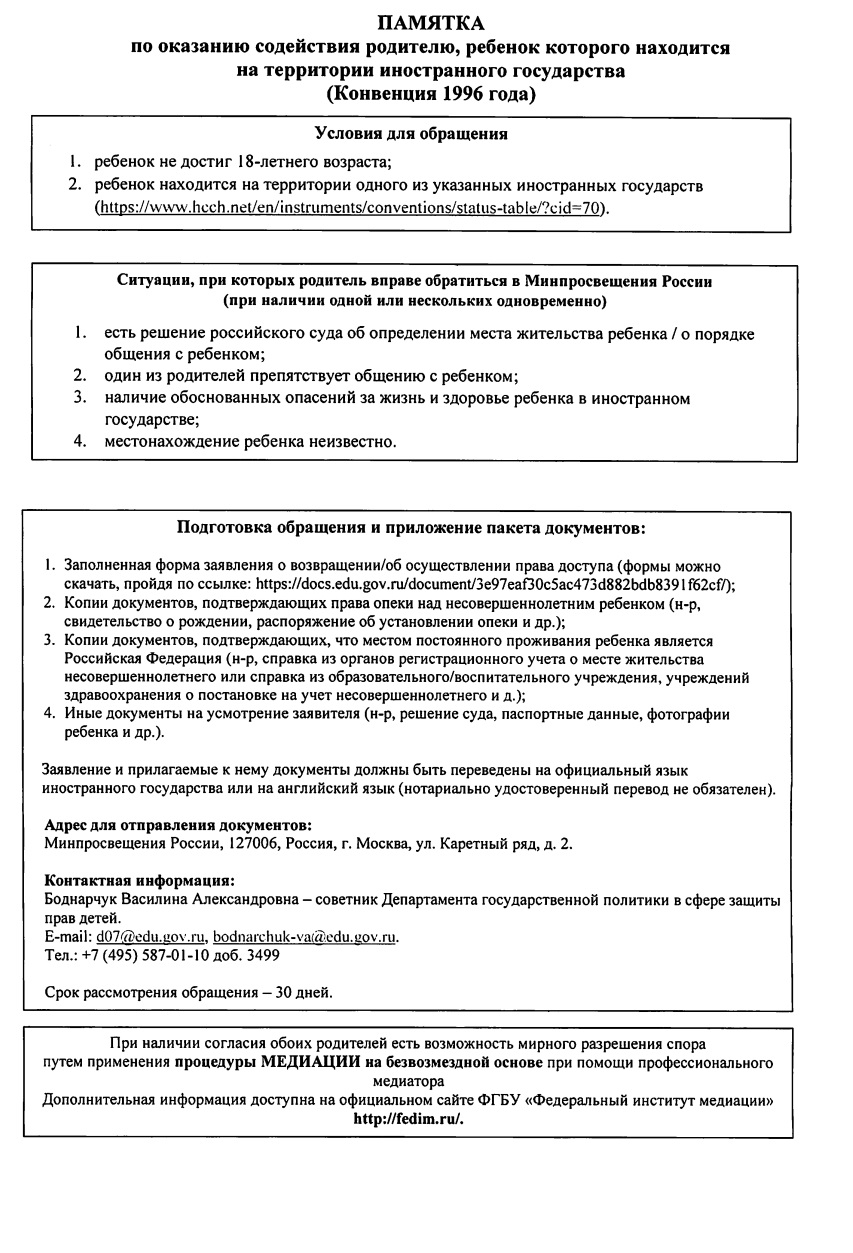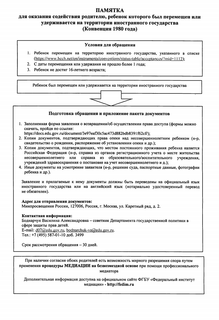 Памятки для родителей по незаконному перемещению детей их возвращением государство постоянного места жительства.